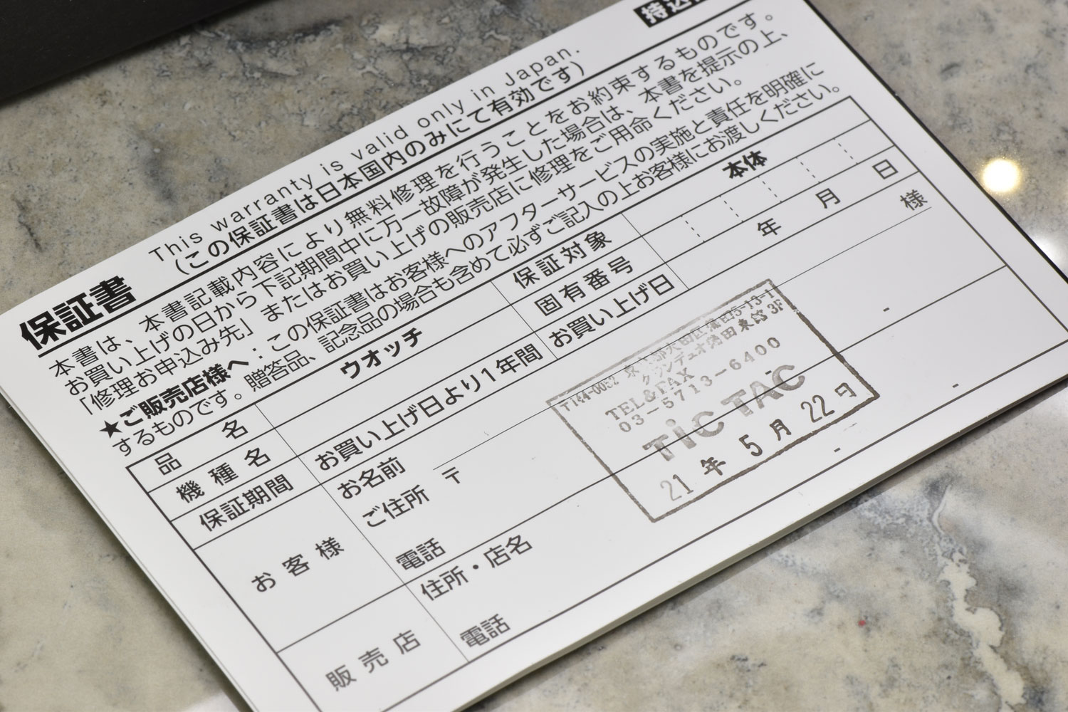 Warranty Card Dated 05-22-2021