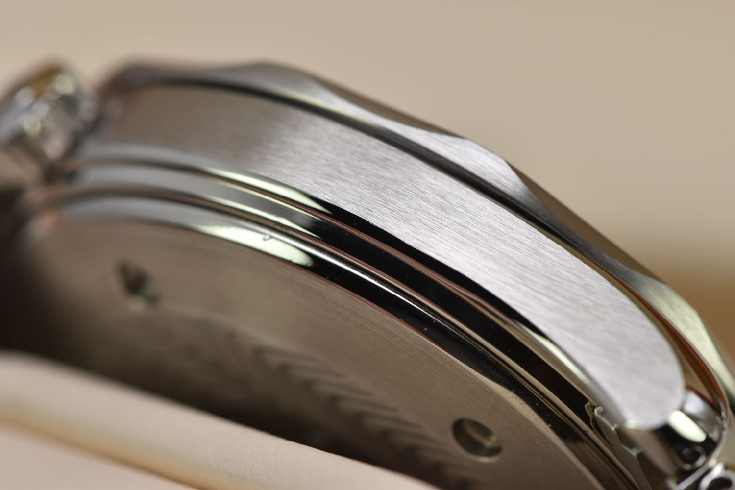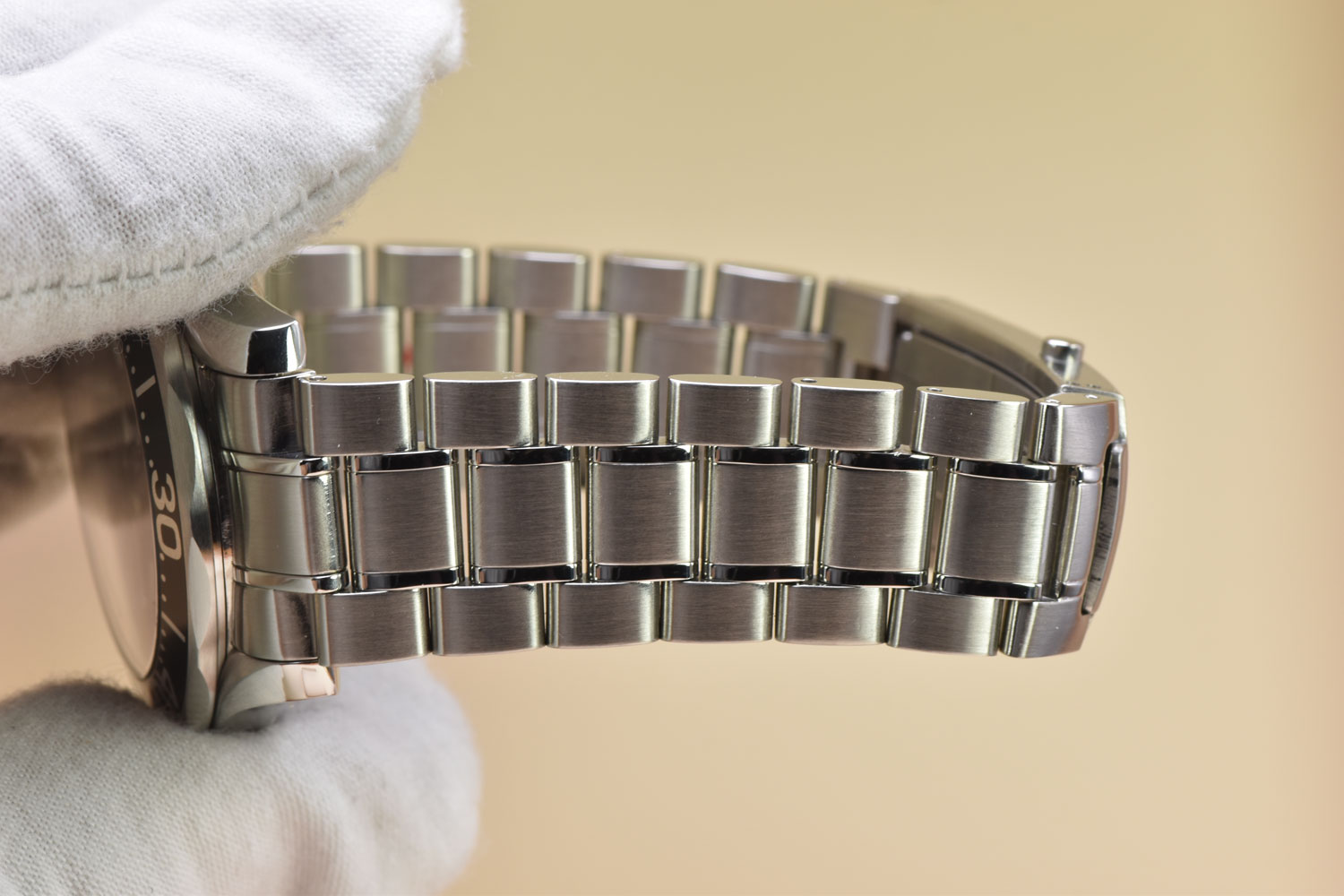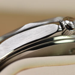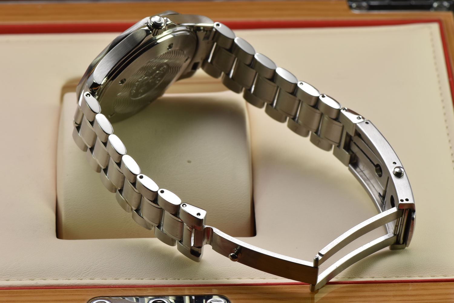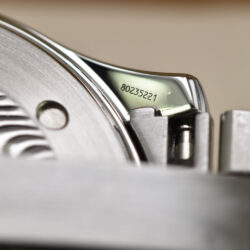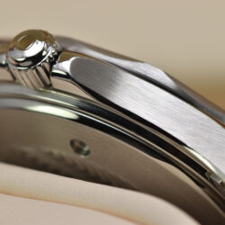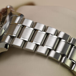 The watch has undergone professional lapping to restore the finish of its case and bracelet. This essential process removes scratches and imperfections, recreating the original texture and preserving the integrity and sharpness of the case.