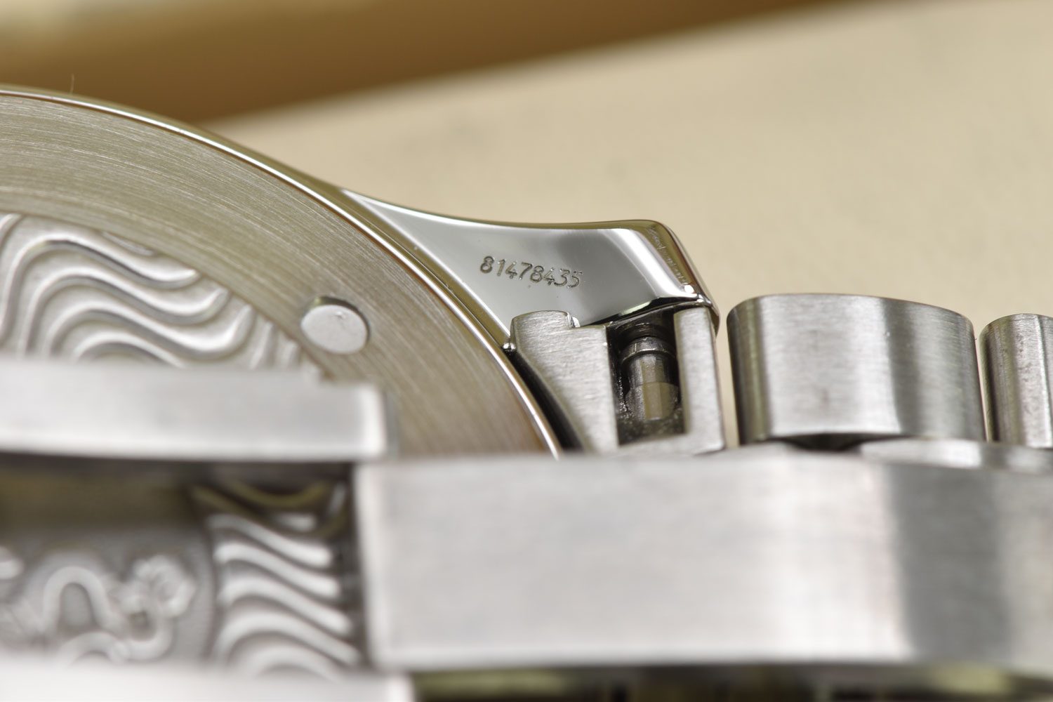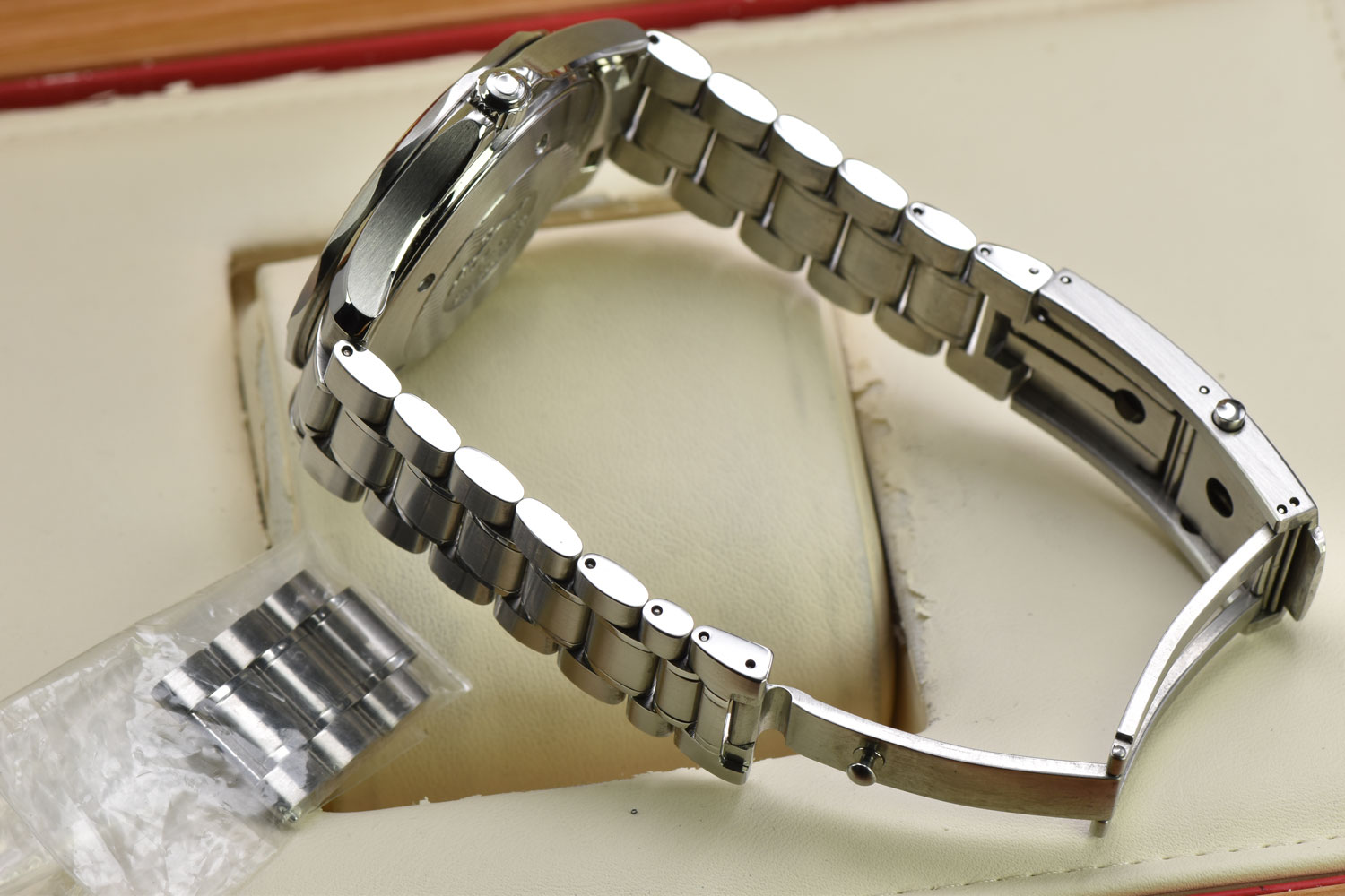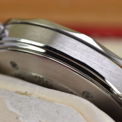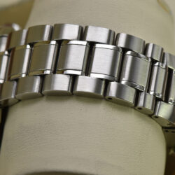 The watch has undergone professional lapping to restore the finish of its case and bracelet. This essential process removes scratches and imperfections, recreating the original texture and preserving the integrity and sharpness of the case.