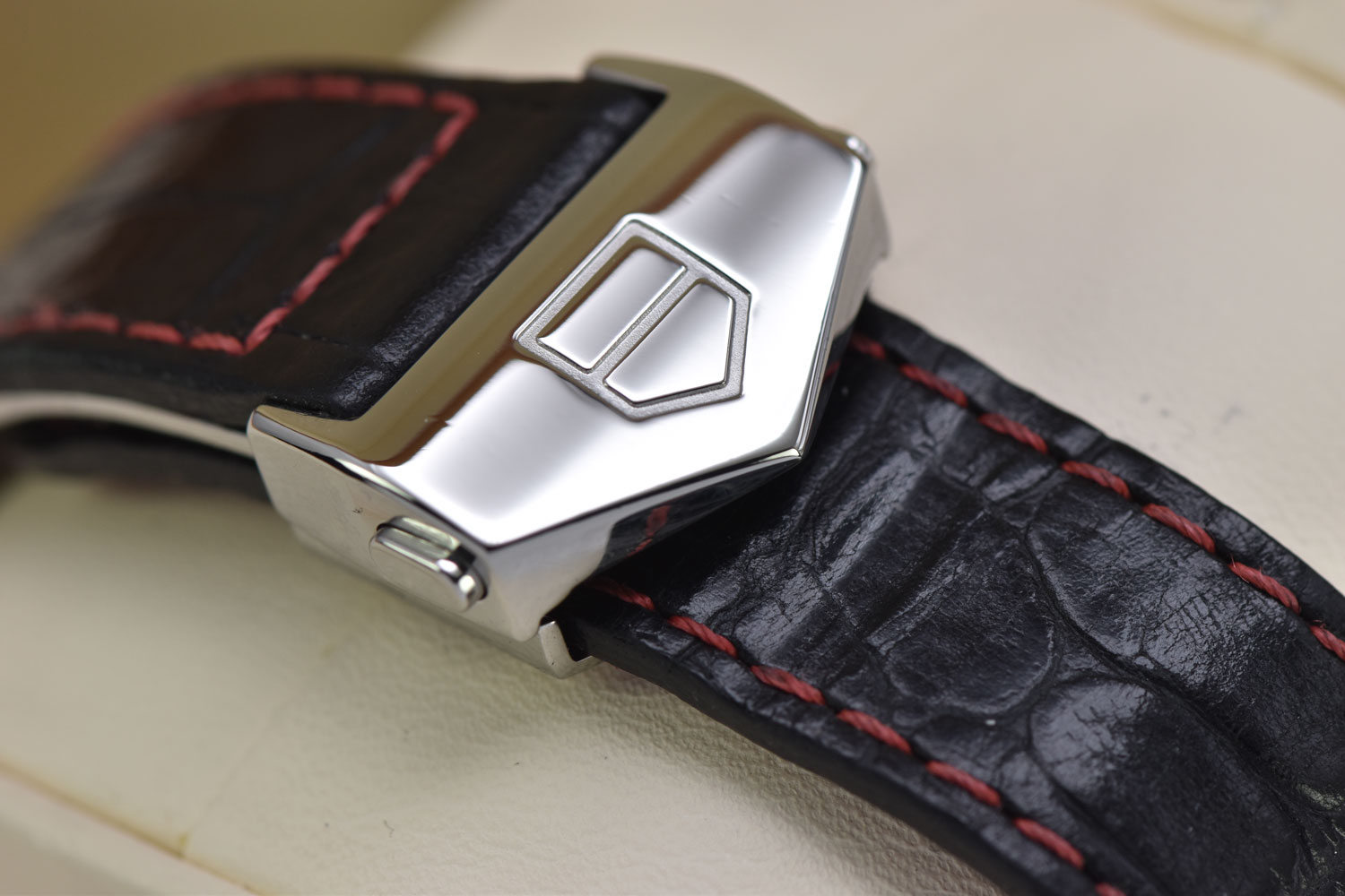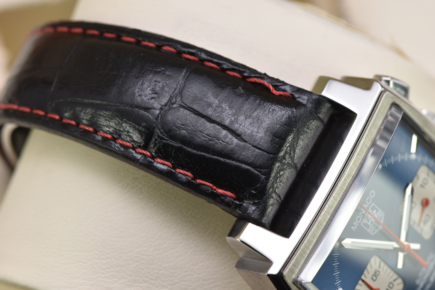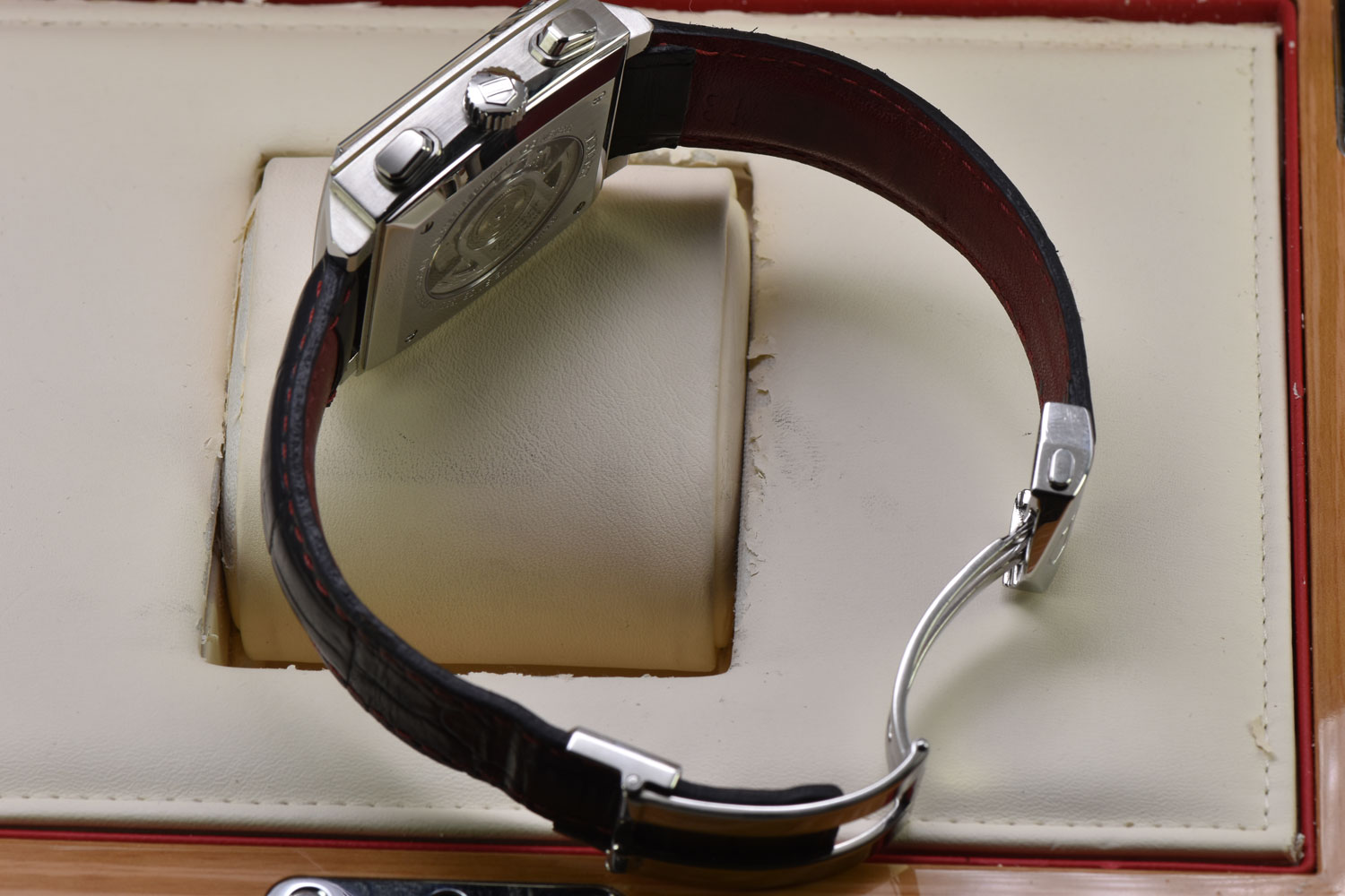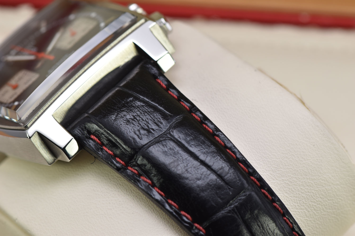 Bracelet / StrapAftermarket Black Leather Strap w/ Red Stitching