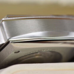 The watch has undergone professional lapping to restore the finish of its case and bracelet. This essential process removes scratches and imperfections, recreating the original texture and preserving the integrity and sharpness of the case.